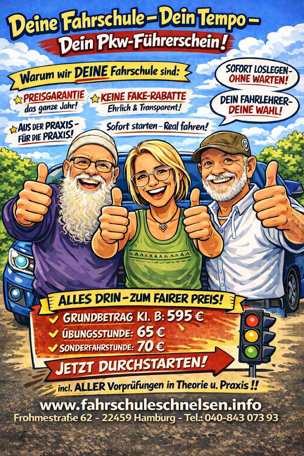 Hallo liebe Besucher*innen. Hier findet Ihr nach und nach einige Bilder von "ehemaligen" Fahrschülern, die die praktische Fahrprüfung im Jahr 2026, erfolgreich abgelegt haben . Vereinzelt sind Daten auf den Bilder mit Hilfe von KI unkenntlich gemacht
